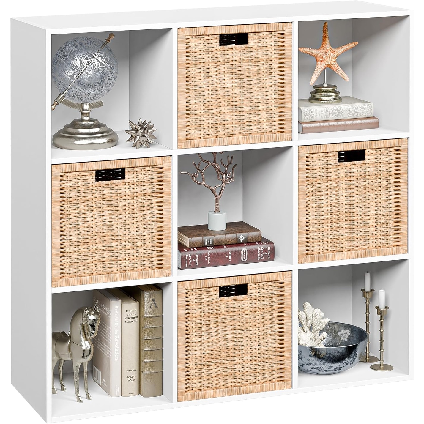 9-Cube Wooden Display Shelf with Removable Panels for Home and Office Storage
