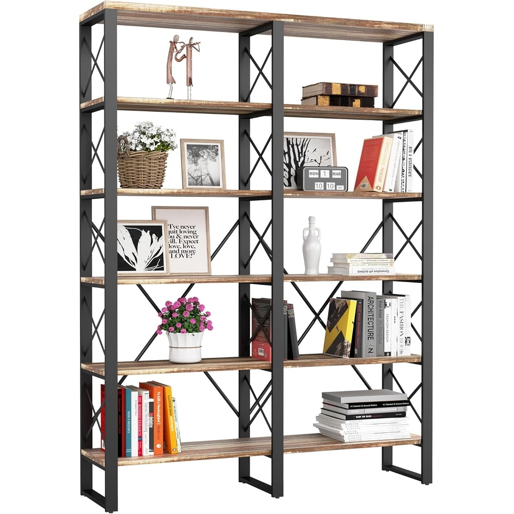 Double Wide 6-Tier 76 inch Industrial Style Open Bookcase