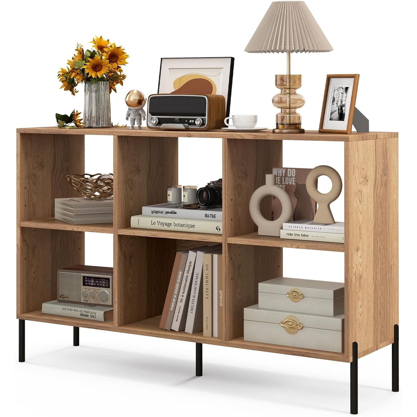 6-Cube Open Bookcase with Adjustable Shelves and Metal Legs, Modern Storage Organizer for Living Room, Study, Bedroom, Office