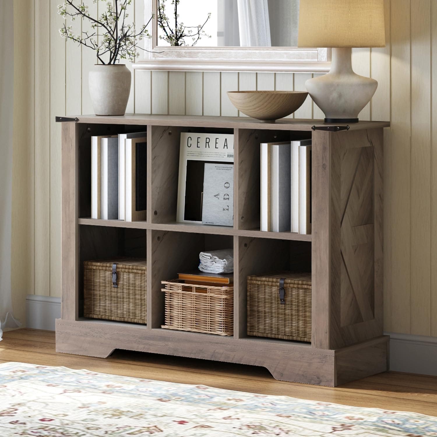 6-Cube Wooden Storage Bookcase, Modern Organizer Shelf for Bedroom & Office, Brown Walnut