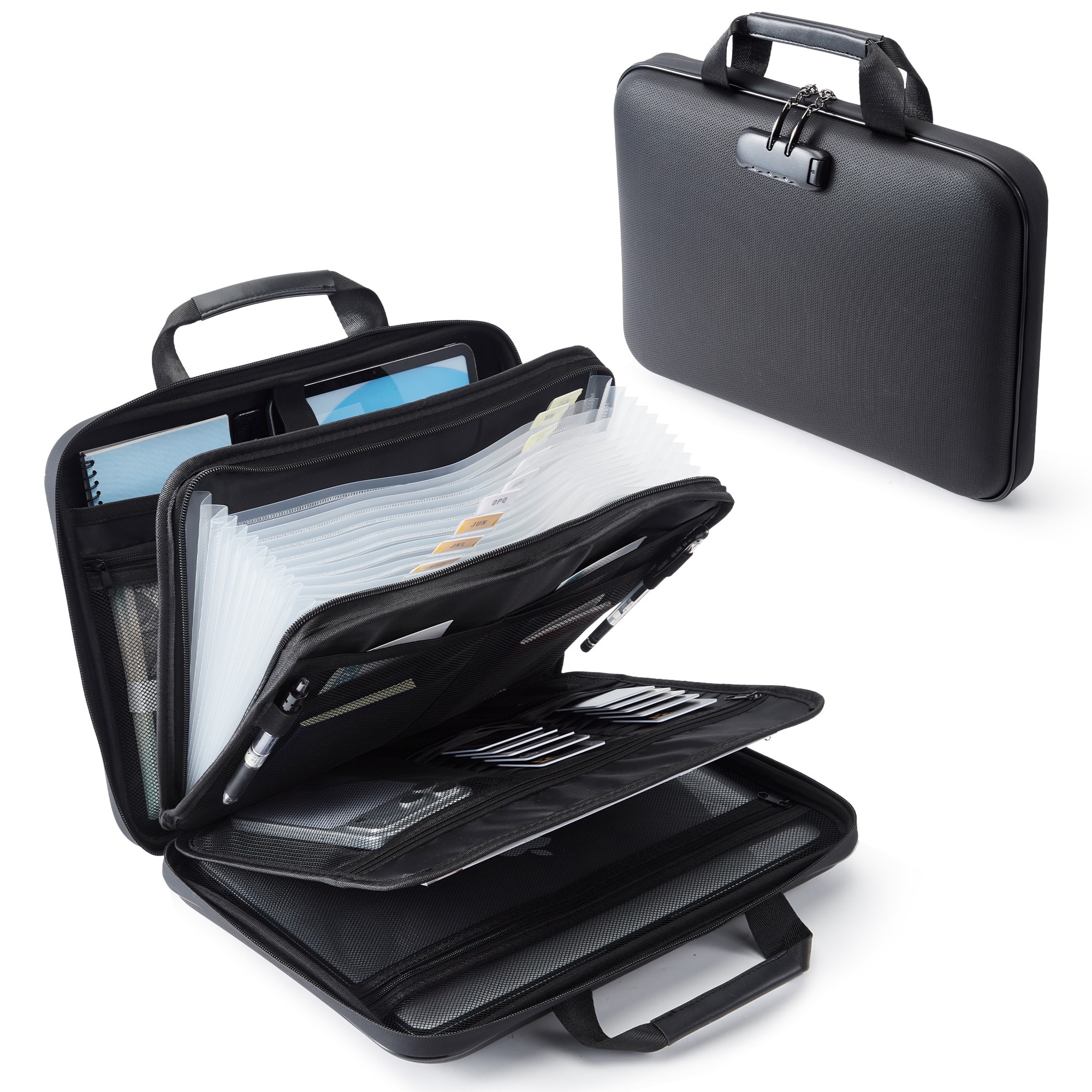 Fireproof & Waterproof Document Box with Lock, Portable Hard Case File Organizer for Home, Office, Travel, Black