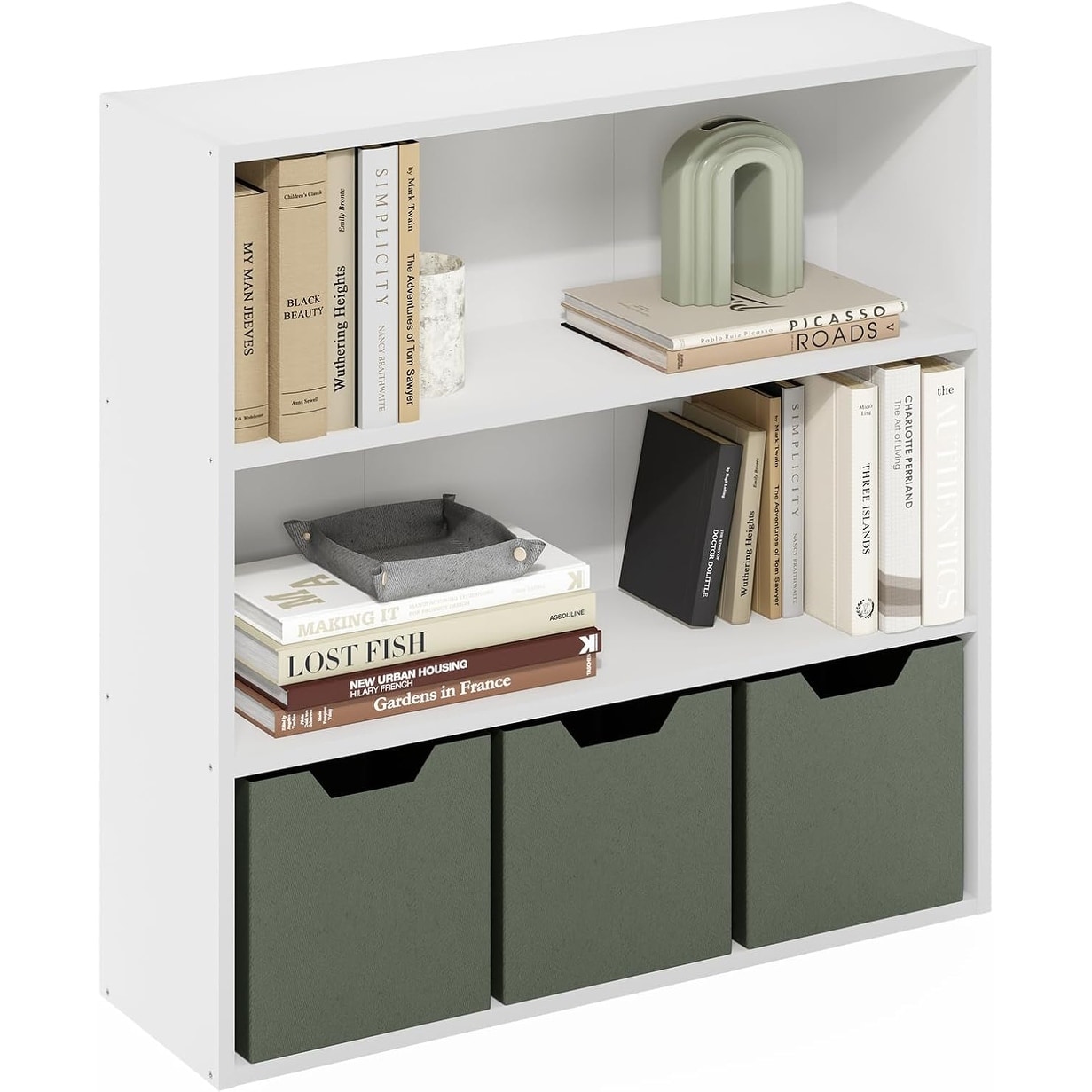 3-Tier Bookshelf with Open Shelf for Living Room, Bedroom, Home Office, White