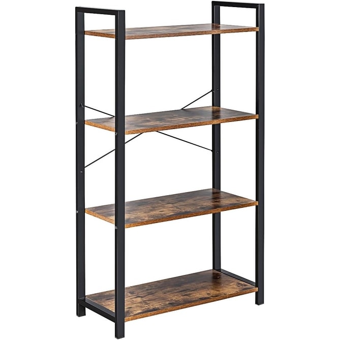 4-Tier Vintage Industrial Bookshelf with Metal Frame, Storage Shelf for Living Room, Bedroom, Office, Brown