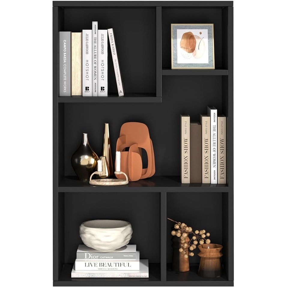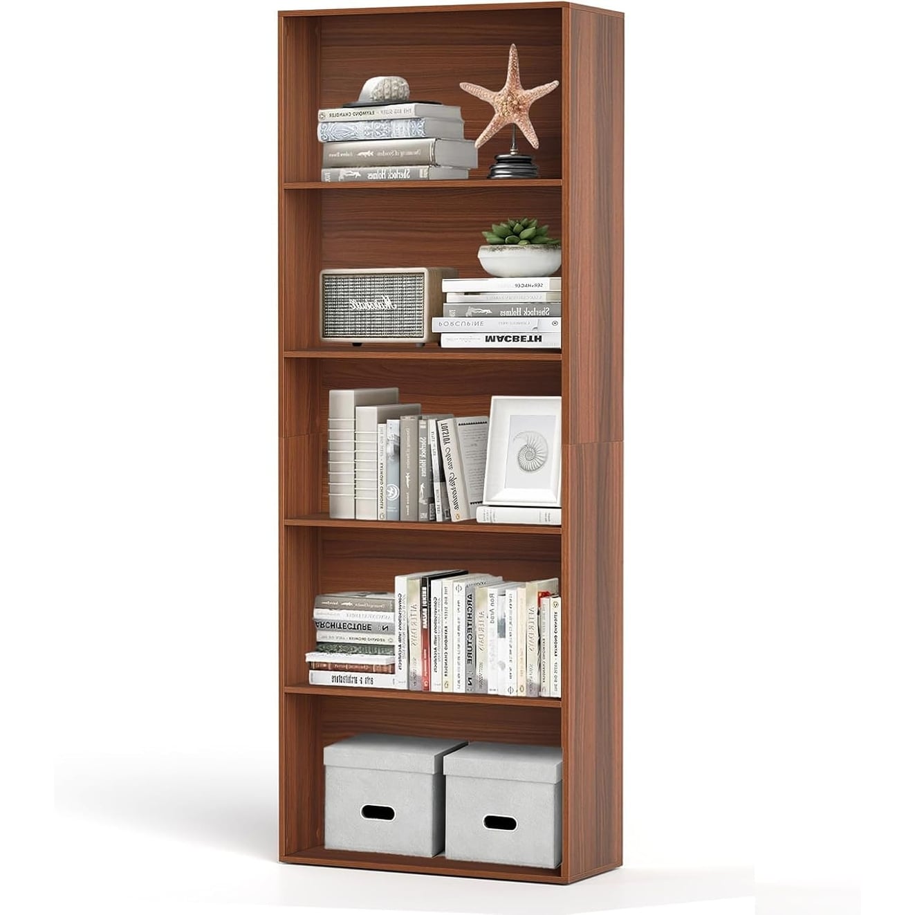 5-Shelf Multi-Functional Modern Wood Storage Display Open Bookshelf for Home Office, Walnut