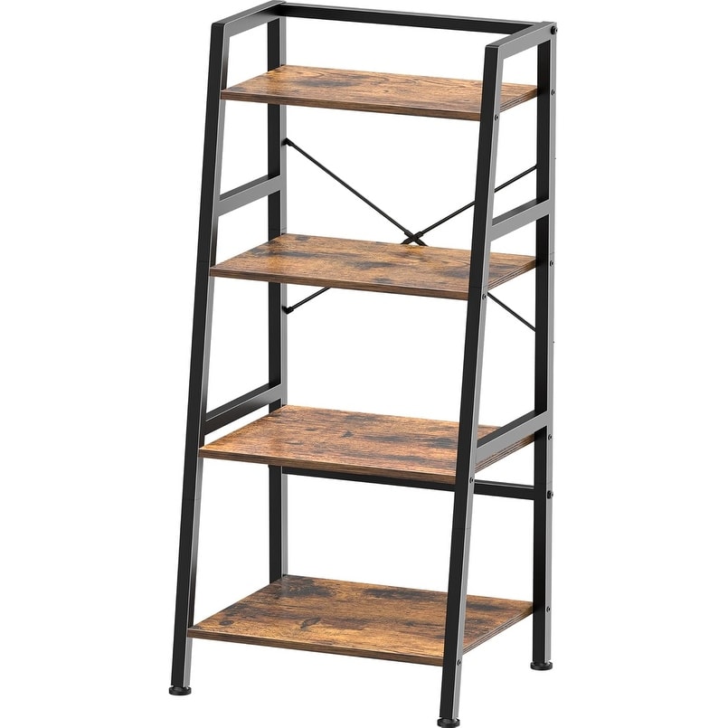 4-Tier Ladder Shelf, Industrial Bookcase with Steel Frame, Rustic Brown & Black, for Living Room, Home Office, Kitchen, Bedroom