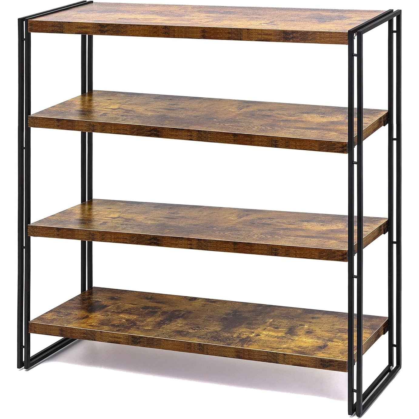 4-Tier Industrial Bookcase, Rustic Wood and Metal Open Display Shelf, Home Office Bedroom Storage Unit