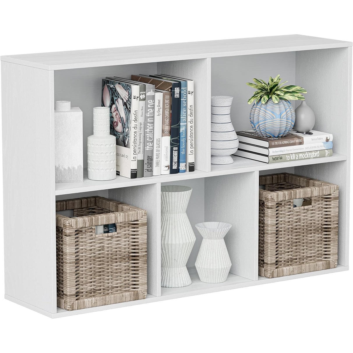 5-Cube Wooden Storage Organizer with Closed Back Panel, 11in Shelf Opening, White