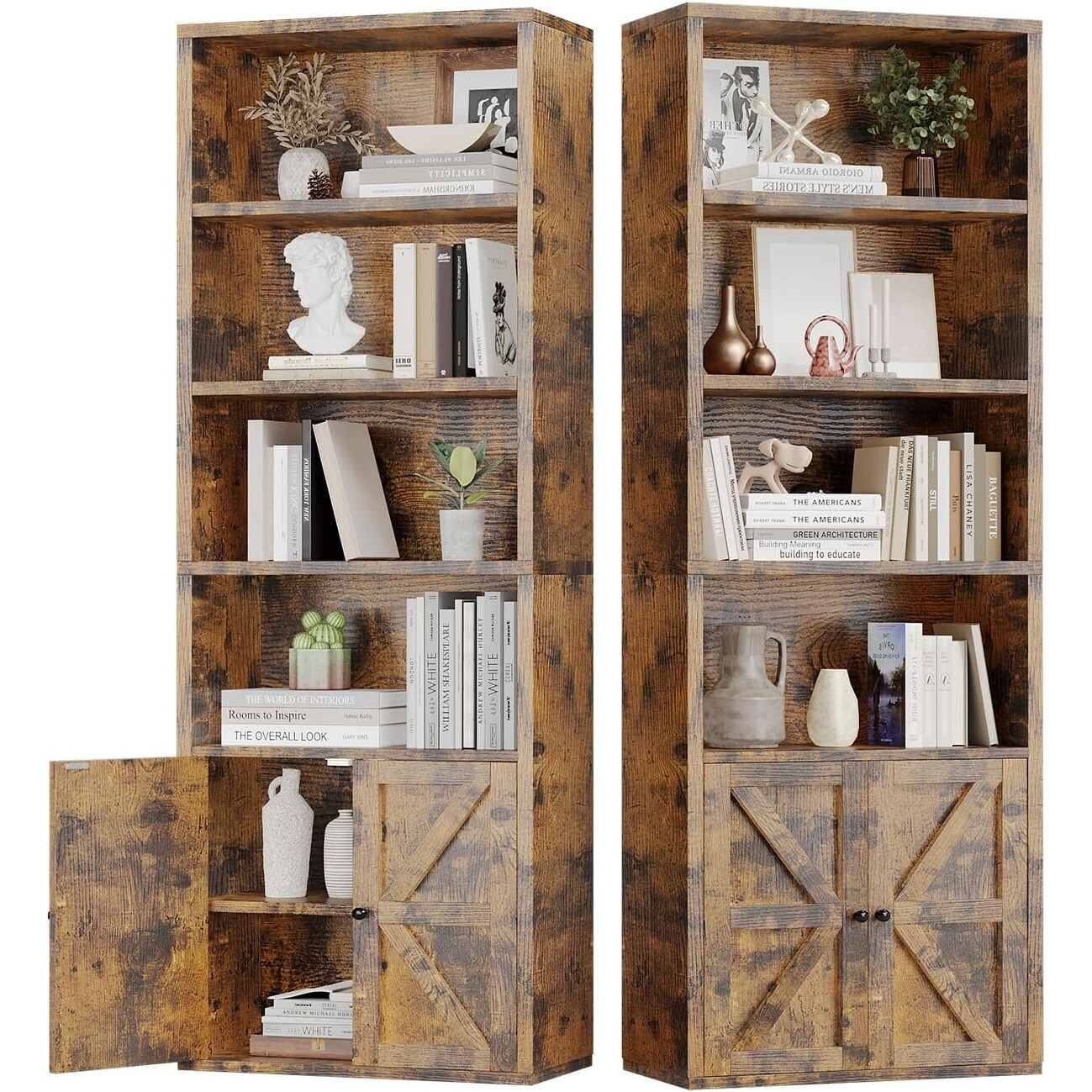 Set of 2 Industrial Bookshelves with Doors, 5-Tier Floor Standing Storage Shelves for Home, Office, Living Room, Bedroom