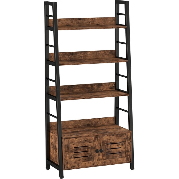 3-Tier Ladder Shelf with Cabinet, Industrial Rustic Brown Bookshelf for Bedroom, Living Room, Home Office