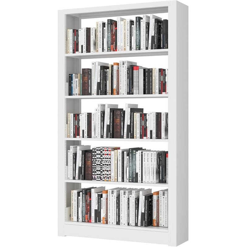 5-Tier Adjustable Metal Bookshelf, White, Sturdy and Waterproof, 69 Inches Tall