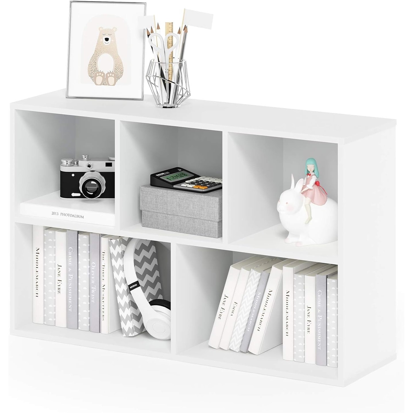 5-Cube Reversible Bookcase, White, Modern Minimalist Design, 9.4x19.5x31.5 Inches