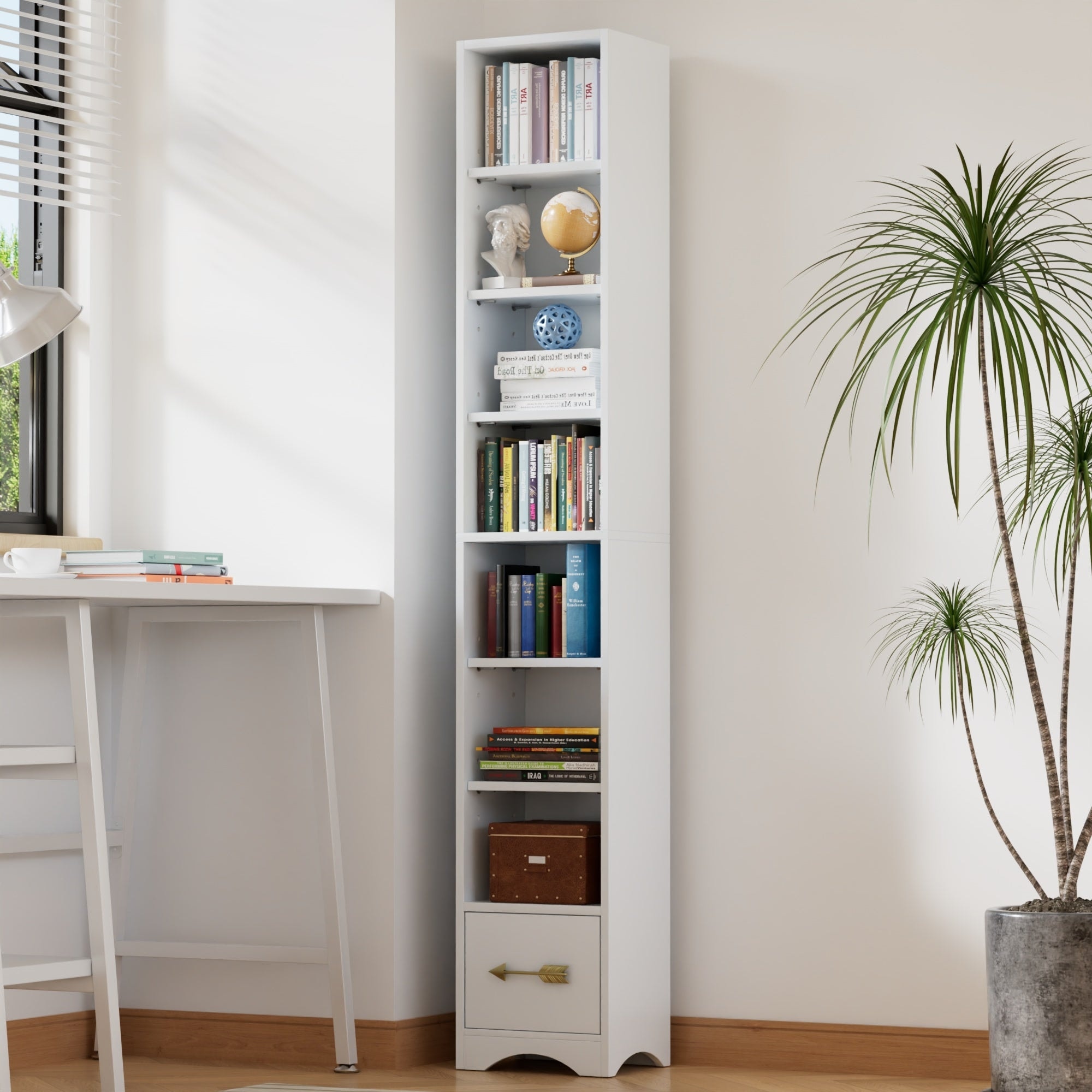 71 Inches Tall Narrow Bookcase 8-Tier Wood Bookshelf Minimalist Corner Bookcase with Adjustable Shelves Slim Media Tower Rack