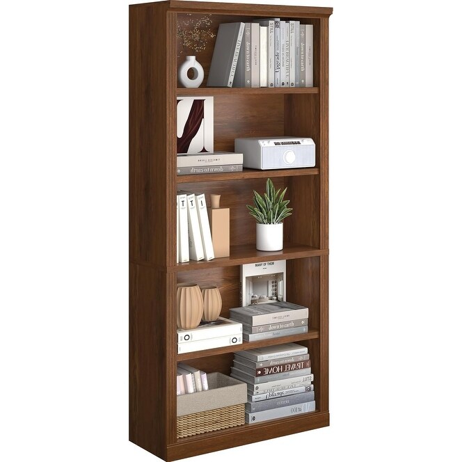 5-Tier Wooden Bookshelf, Rustic Storage Shelves, Classic Oak, 68.4 Inch Height