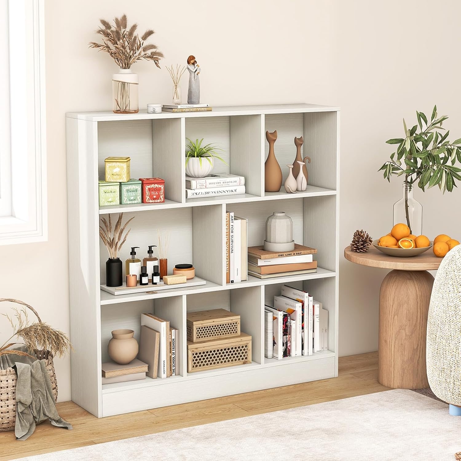 3-Tier Bookcase Storage Shelves, Dark Walnut, Durable Composite Wood, 21.8x39.5x9.3 inches