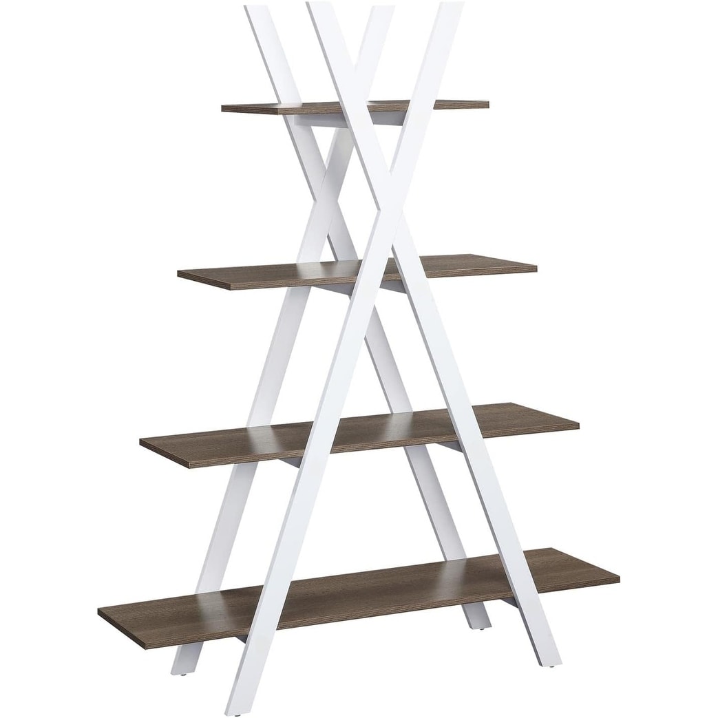 45.75 Inch 4-Tier Farmhouse Open-Concept Bookshelf with X-Shaped Shelving for Living Room, Office, and Home Decor
