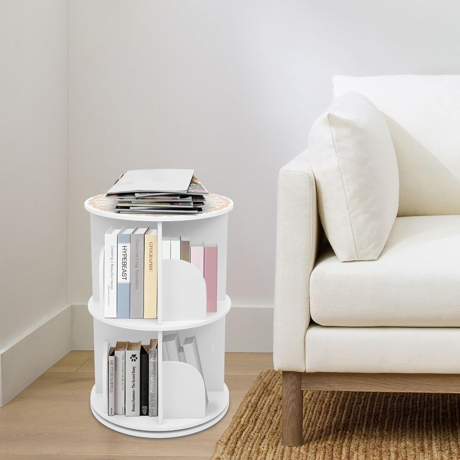 2-Tier Rotating Bookshelf with 360° Swivel, Space-Saving Design for Bedroom, Living Room, Study, or Office
