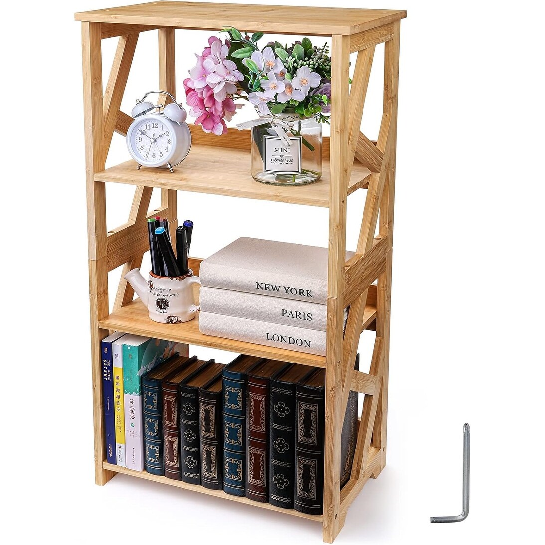 3-Tier Open Shelf Bamboo Bookcase, Multi-Purpose Storage Shelf for Bedroom, Living Room, Office, Bathroom