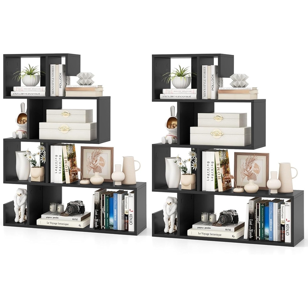 Modern 5-Tier S-Shaped Bookshelf with Anti-Tipping Kits, Geometric Corner Display Rack for Living Room & Office, Black
