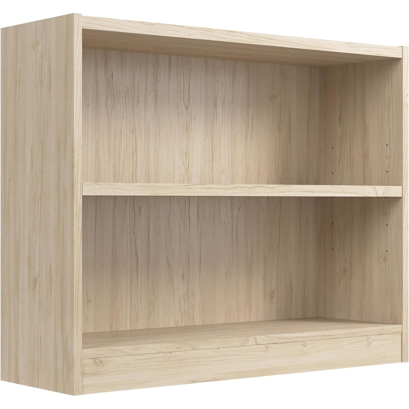 Universal Small 2 Shelf Bookcase in Natural Elm for Home Office or Living Room Organization