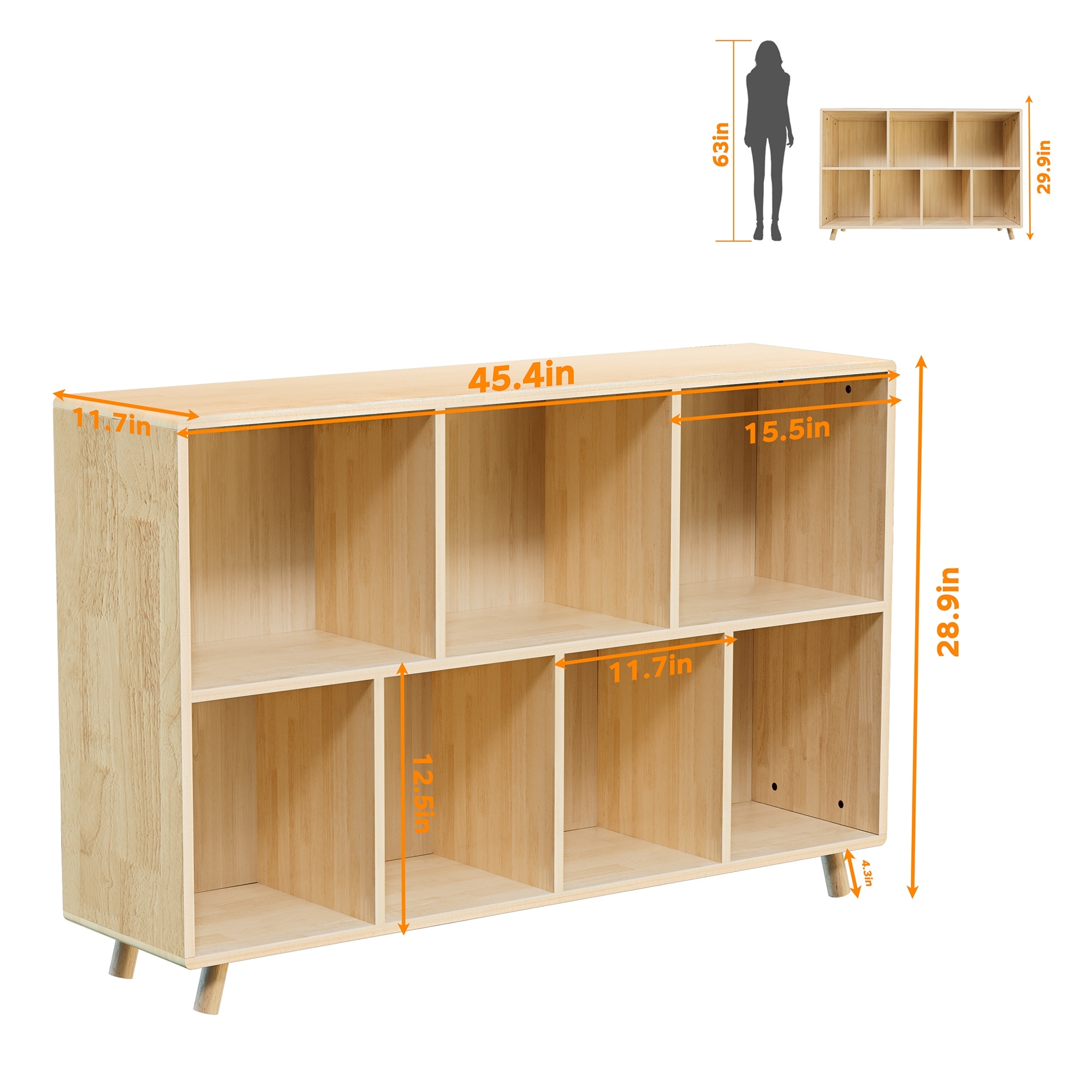 Wooden Bookshelf Two Tier Bookcase Cube Storage Organizer Open Book Shelf With Legs