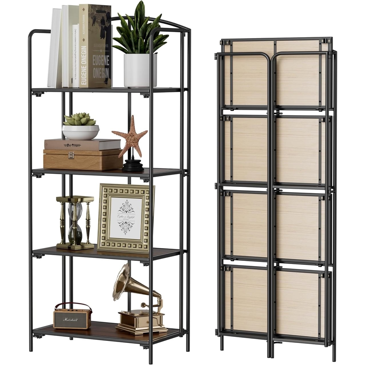 4-Tier Collapsible Bookshelf for Living Room, Portable Storage Organizer for Home Office