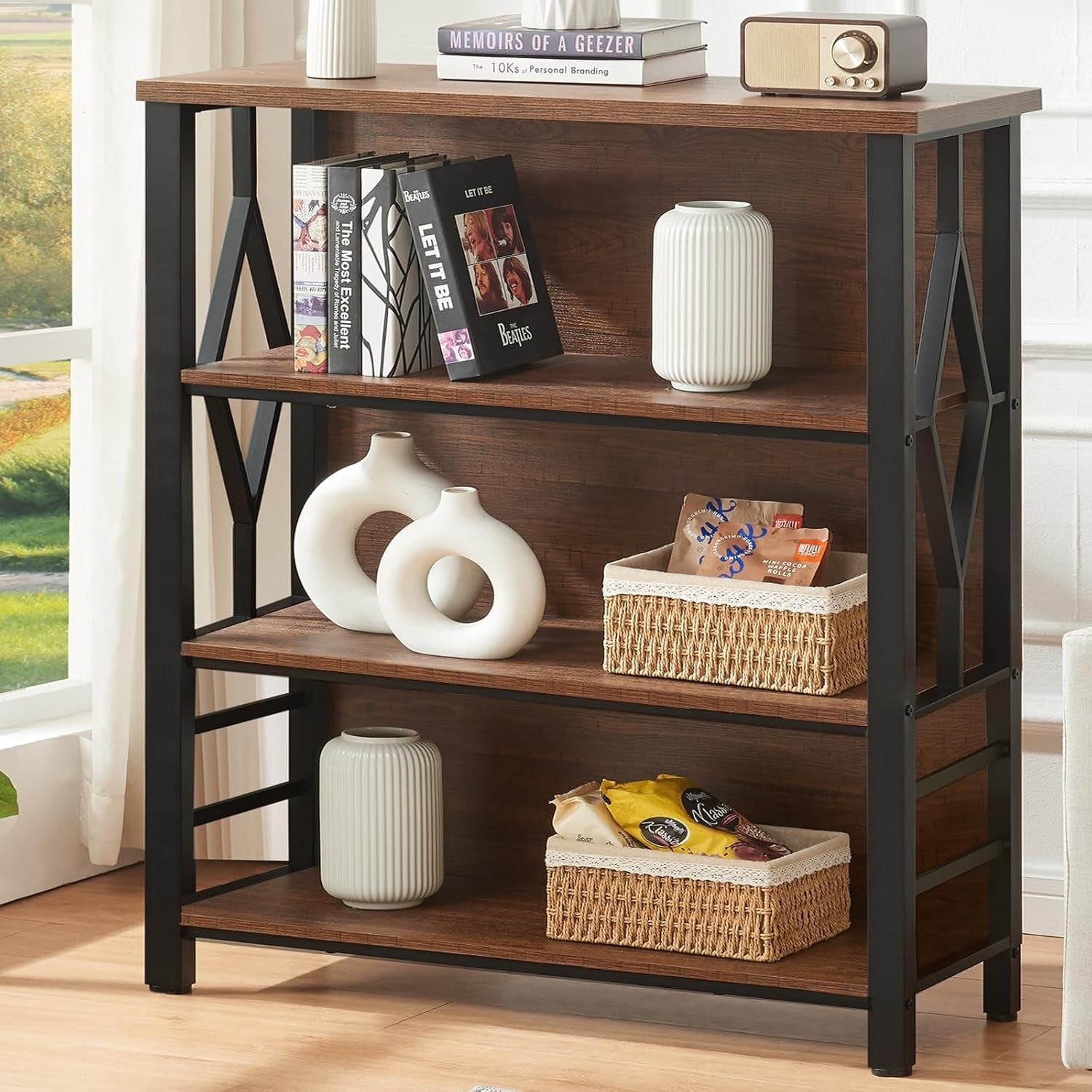 4-Tier Rustic Industrial Bookshelf with Engineered Wood Shelves, Rustic Brown