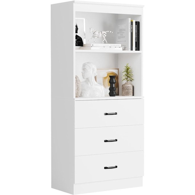 55.5 Inch Tall Wooden Bookshelf with 3 Drawers and 2 Open Shelves, Waterproof Storage Cabinet for Living Room or Bedroom