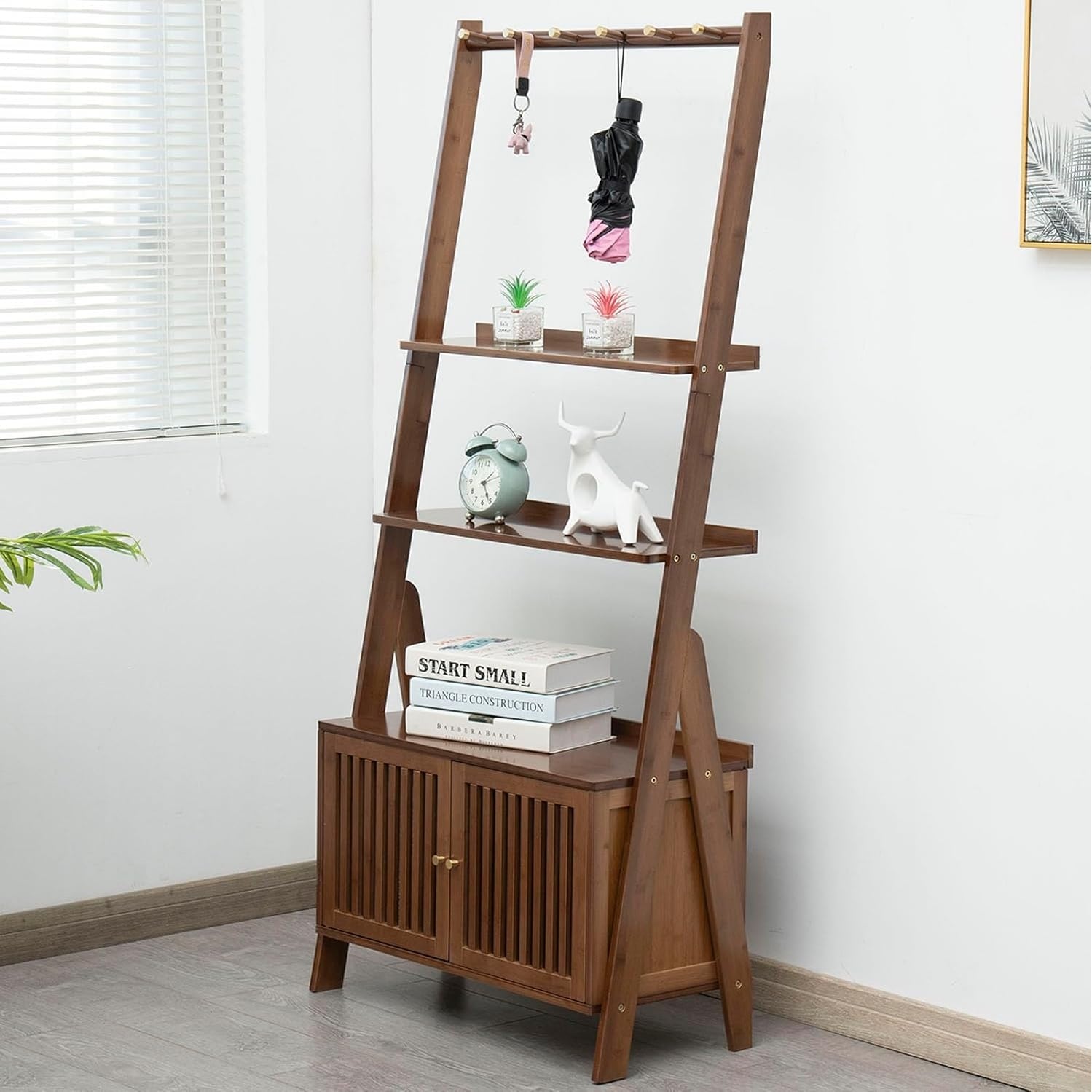 Modern Bamboo Ladder Shelf - 4 Tier Open Storage Bookcase for Living Room, Bathroom, Kitchen & Office