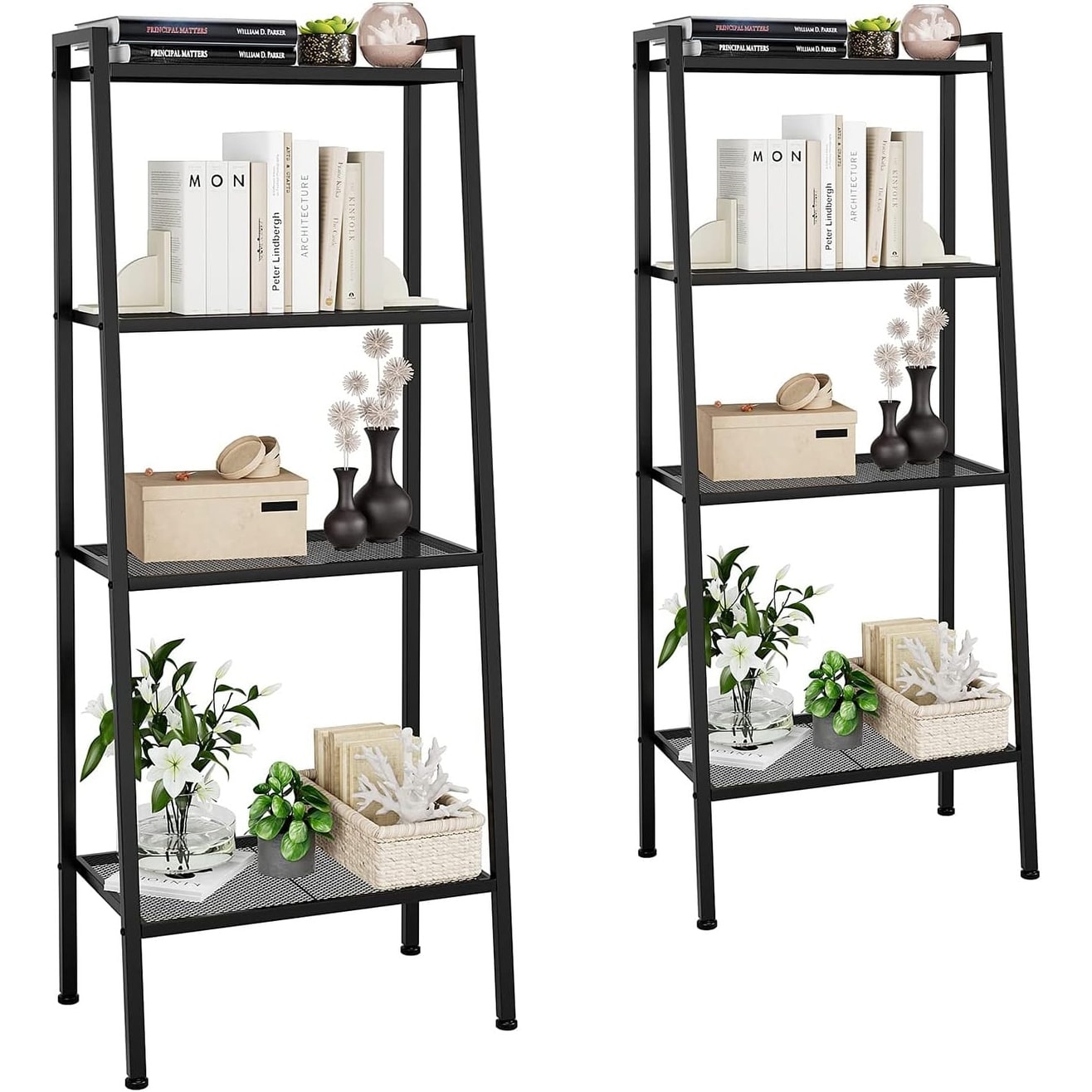 4 Tier Ladder Shelf, Set of Two Industrial Bookcase Plant Flower Stand Rack