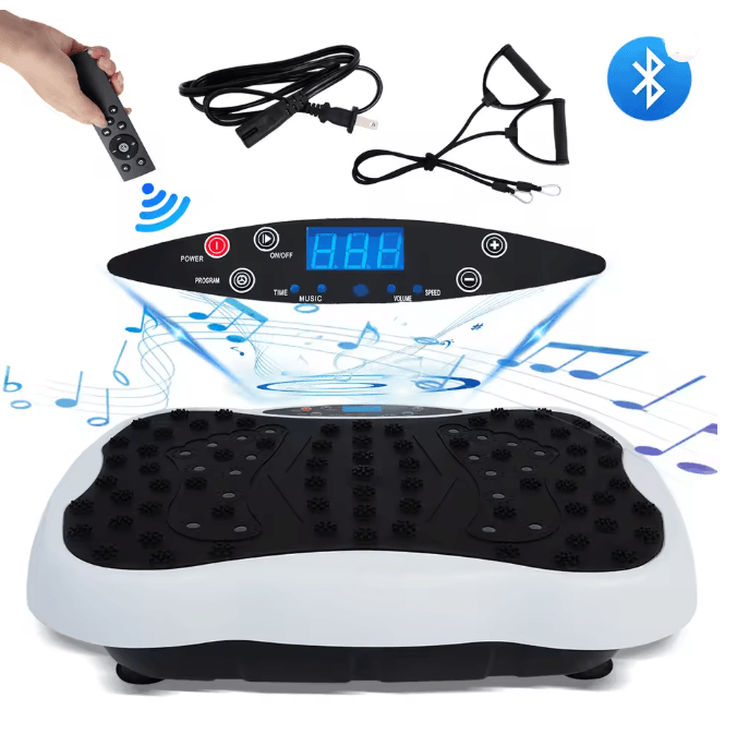 Full Body Vibration Plate Exercise Machine With Resistance Bands And Remote white