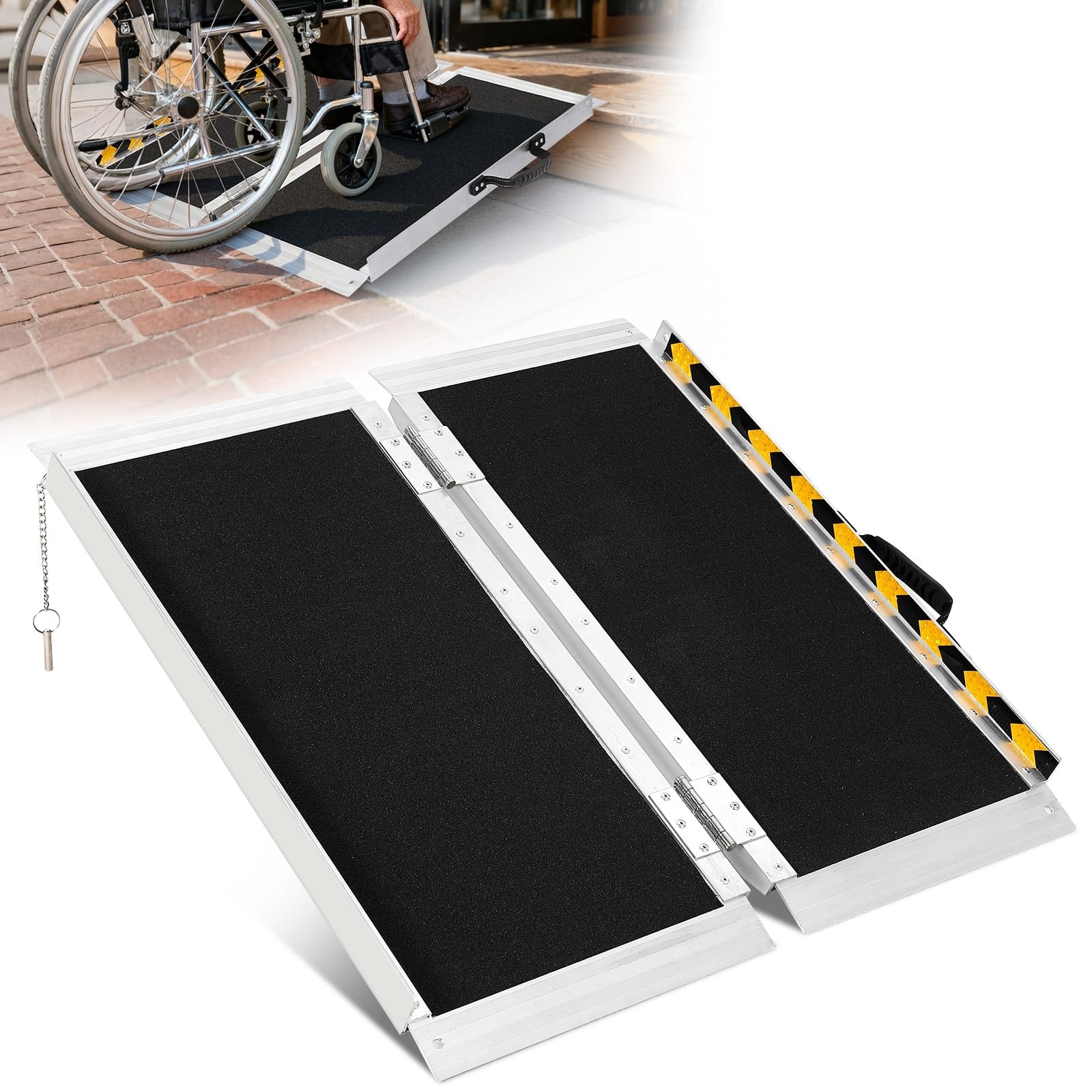 Folding Aluminum Wheelchair Ramp, 800LB Capacity, Non-Slip Surface for Steps & Vehicles