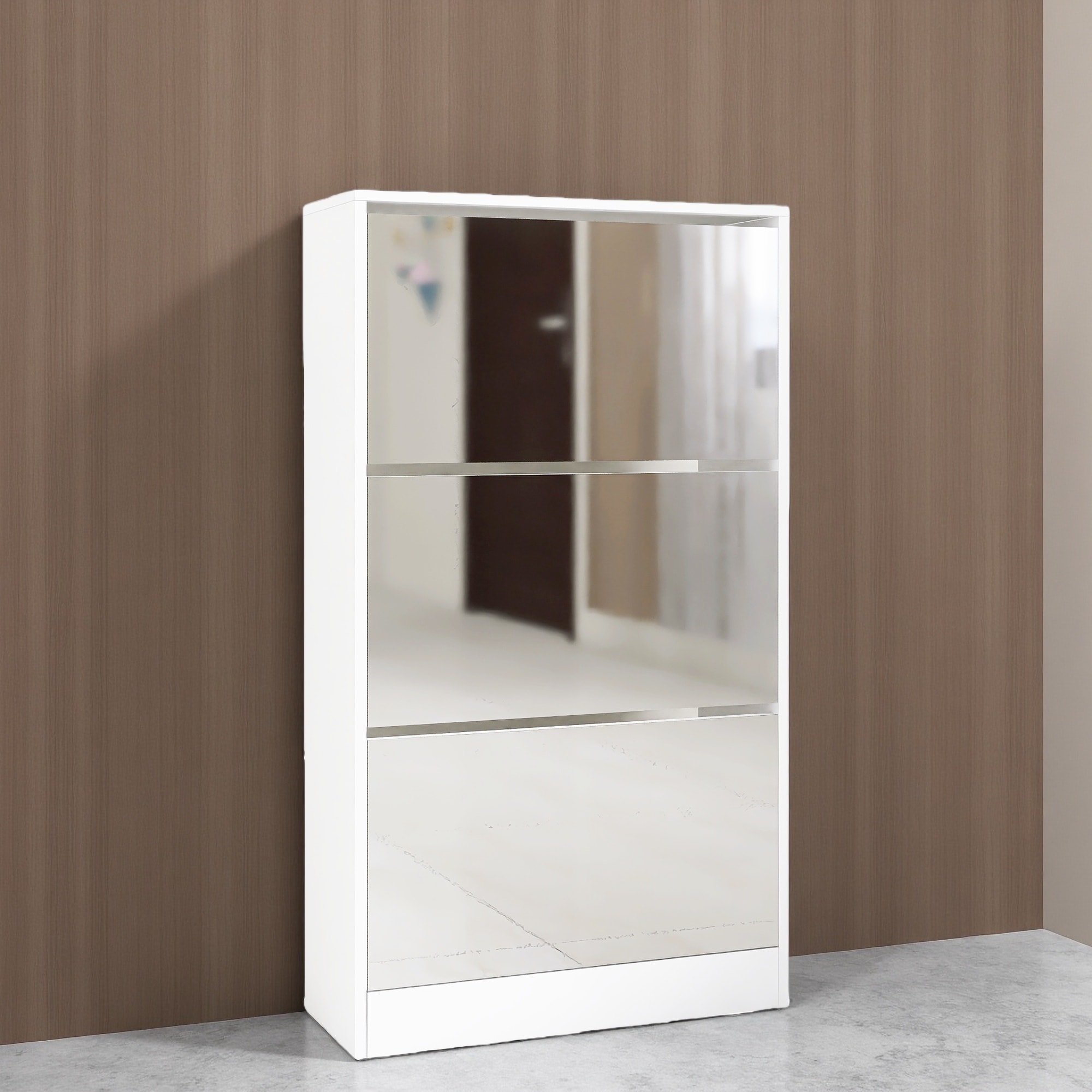 Freestanding Shoe Cabinet with 3 Rotating Drawers and Mirror