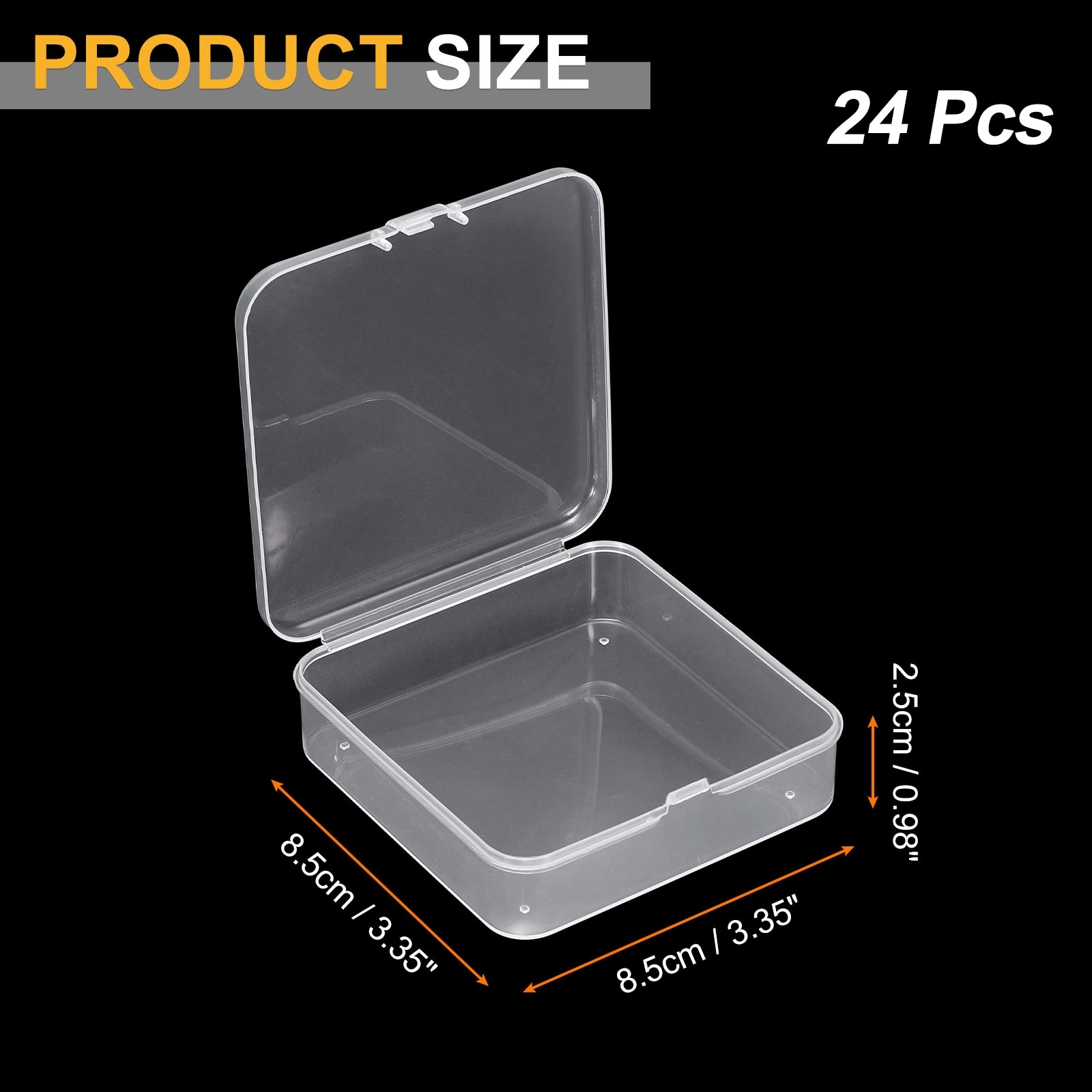 Mini Clear Plastic Containers Boxes, Bead Storage Organizer Boxes with Hinged Lid Square Holder Plastic Case - Transparent