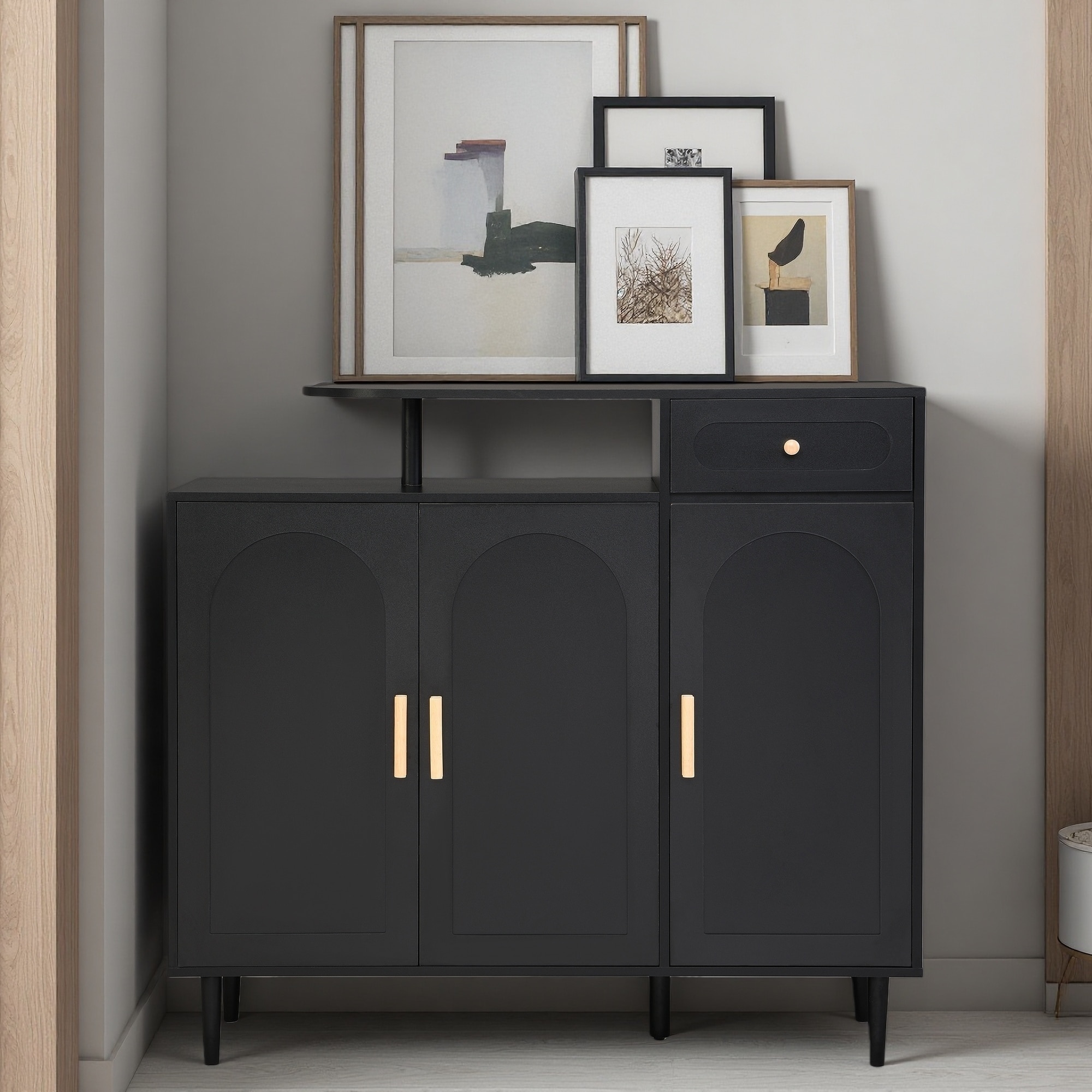 Elegant Shoe Cabinet with Adjustable Shelves, Arched Doors and Drawer
