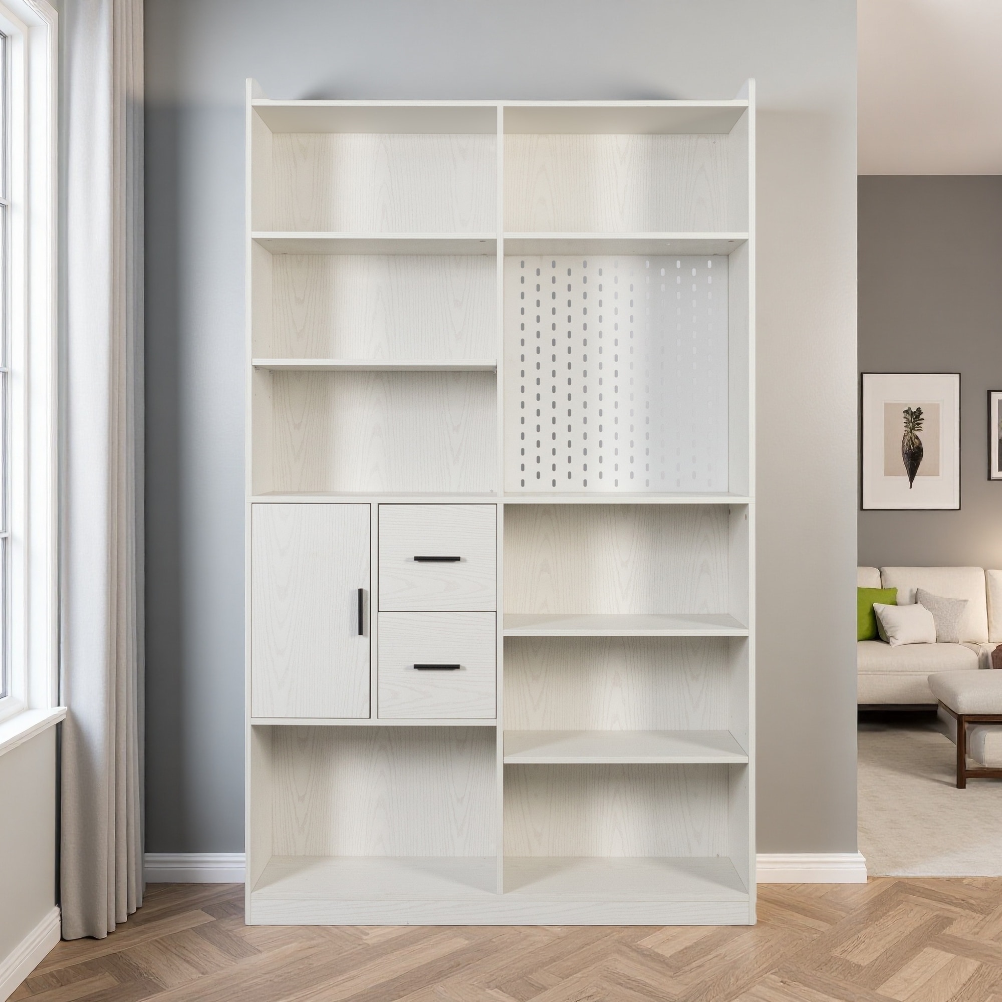 79" Bookshelf with Pegboard, Drawers & 9 Shelves