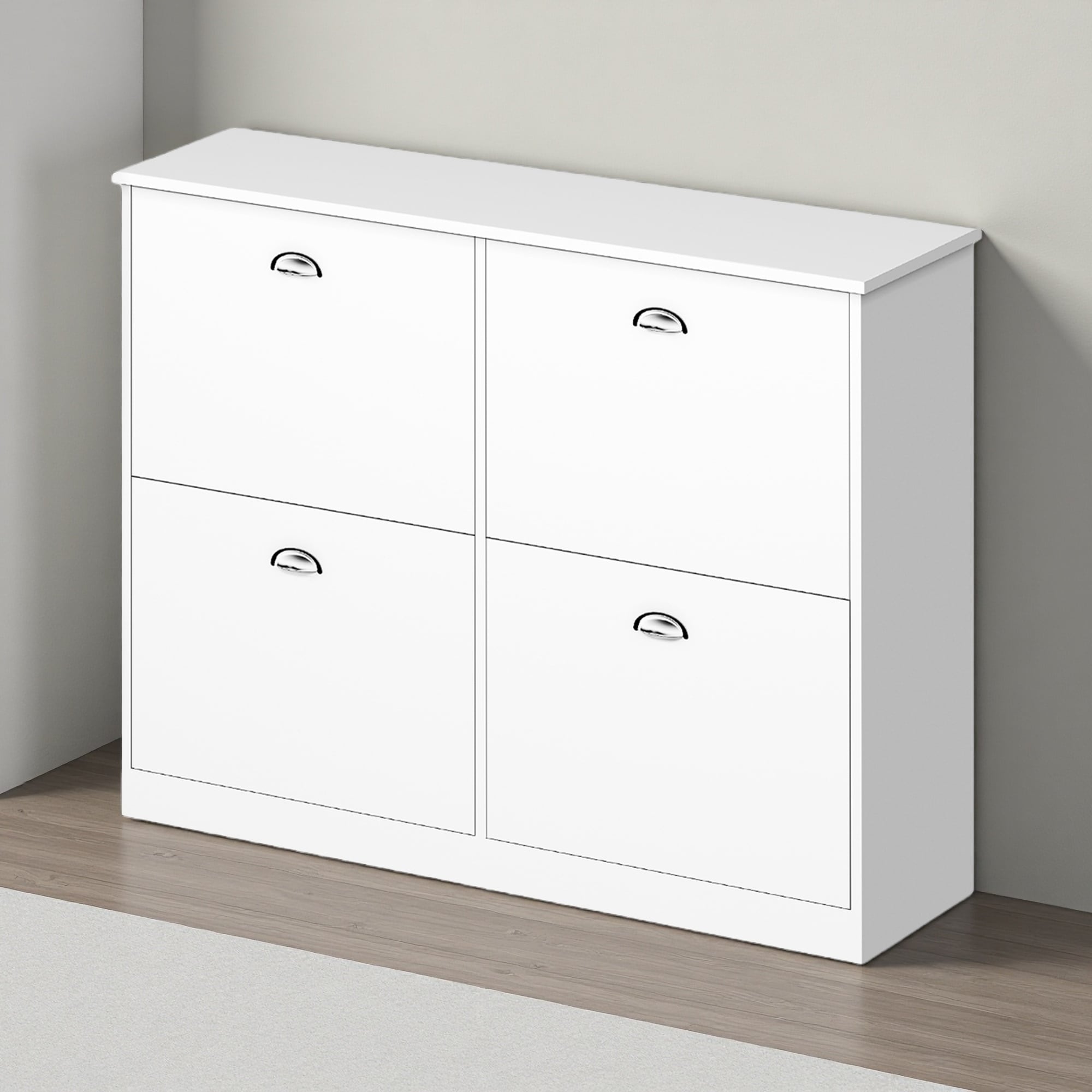 Tipping Bucket Shoe Cabinet with 4 Flip Drawers and Shoe Rack