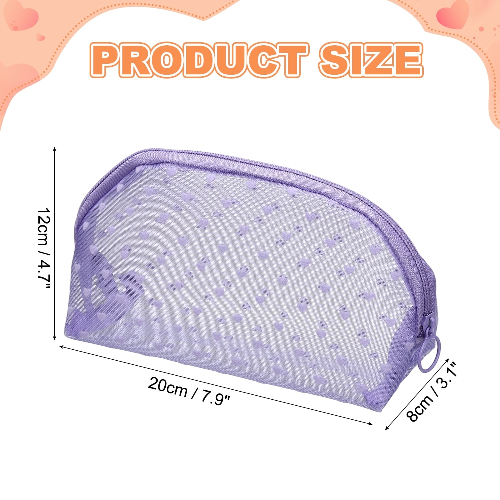 Cute Mini Makeup Bag, Mesh Cosmetic Bag Half Round for Women Small Purse Heart Printed Organizer Pouches with Zipper