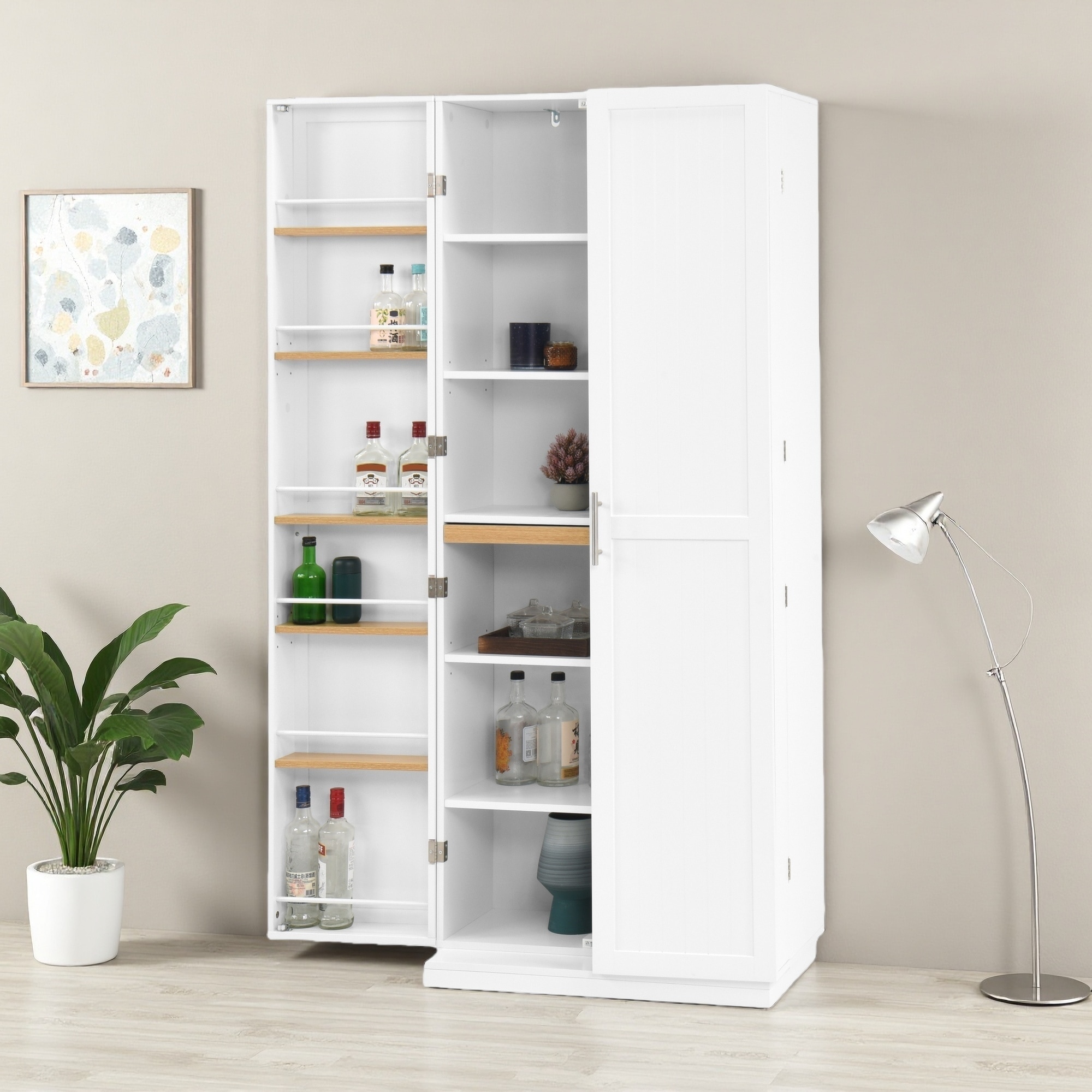 71.6" Tall White Pantry Cabinet with Adjustable Shelves