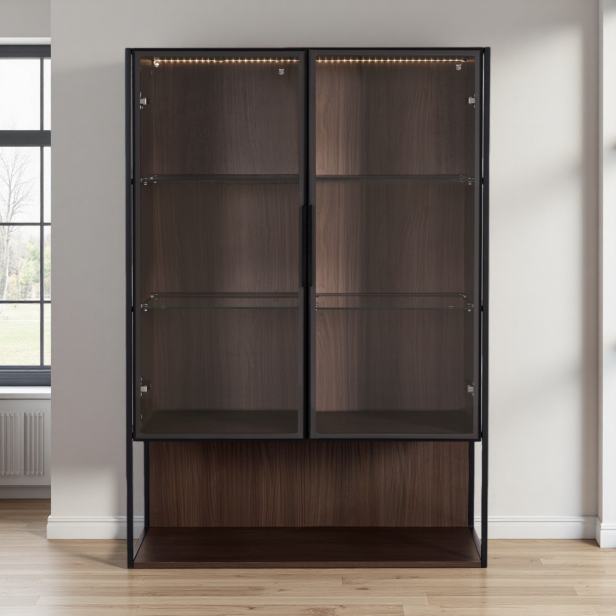 51.2" Display Cabinet with Adjustable Glass Shelves & LED Lighting