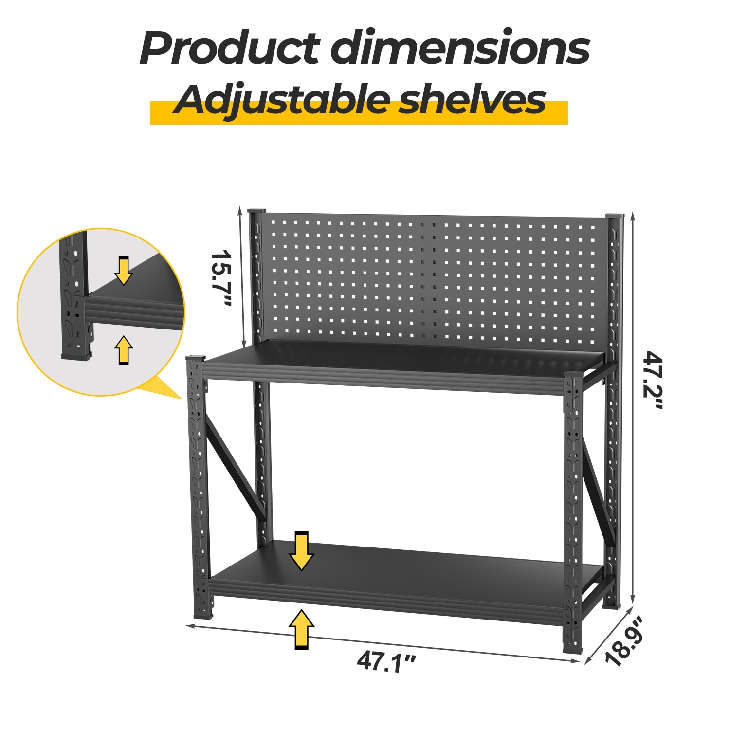 Work Bench With Pegboard Heavy Duty Capacity Workbench With Wheels Adjustable Shelves