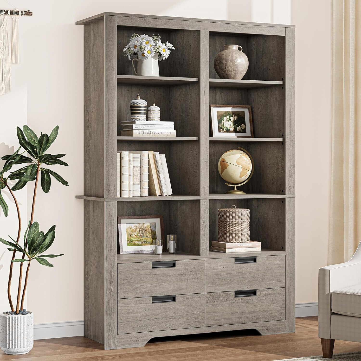 72 in Tall Bookcase, Freestanding Display Storage Bookshelves with Storage