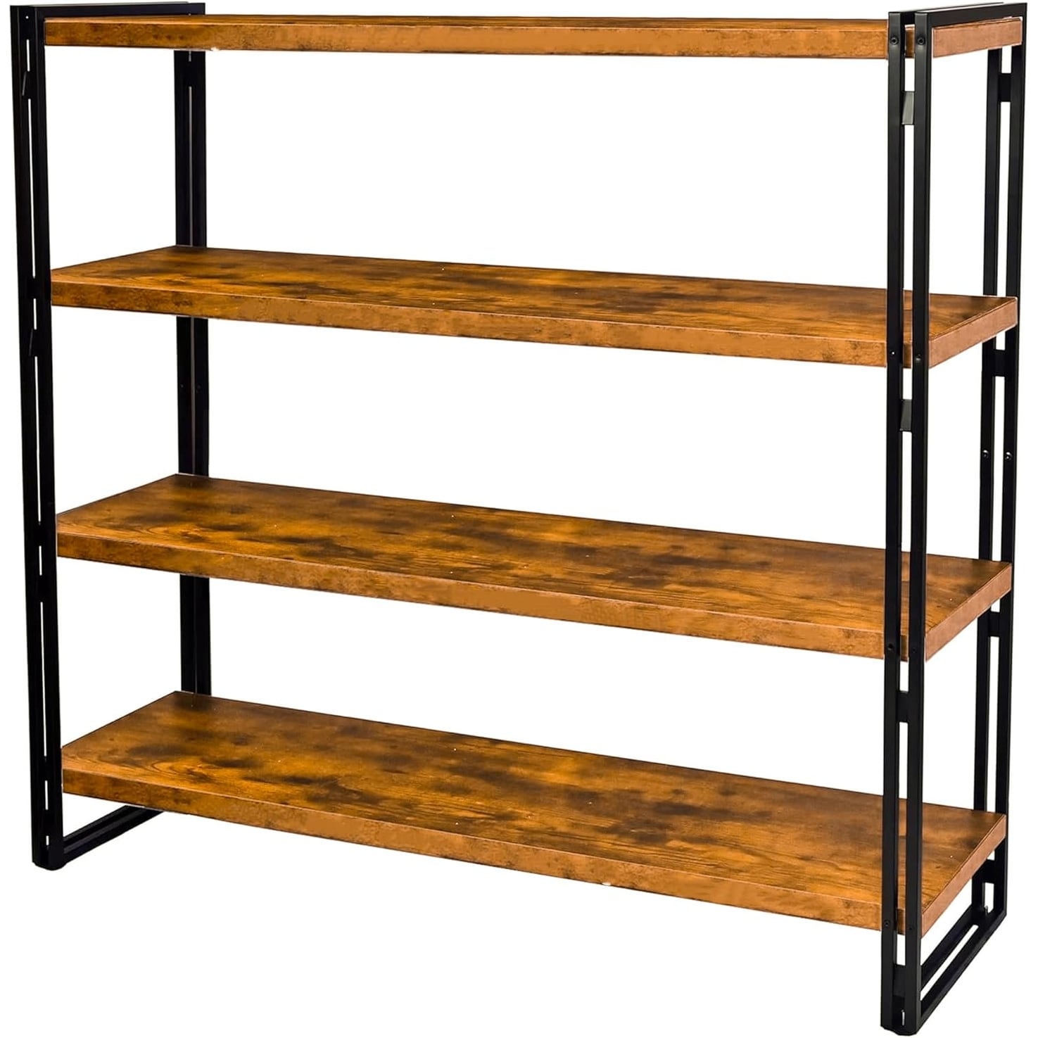 47 Inch 4-Tier Rustic Wood and Metal Industrial Bookshelf for Home Office, Bedroom, Kitchen, Bathroom