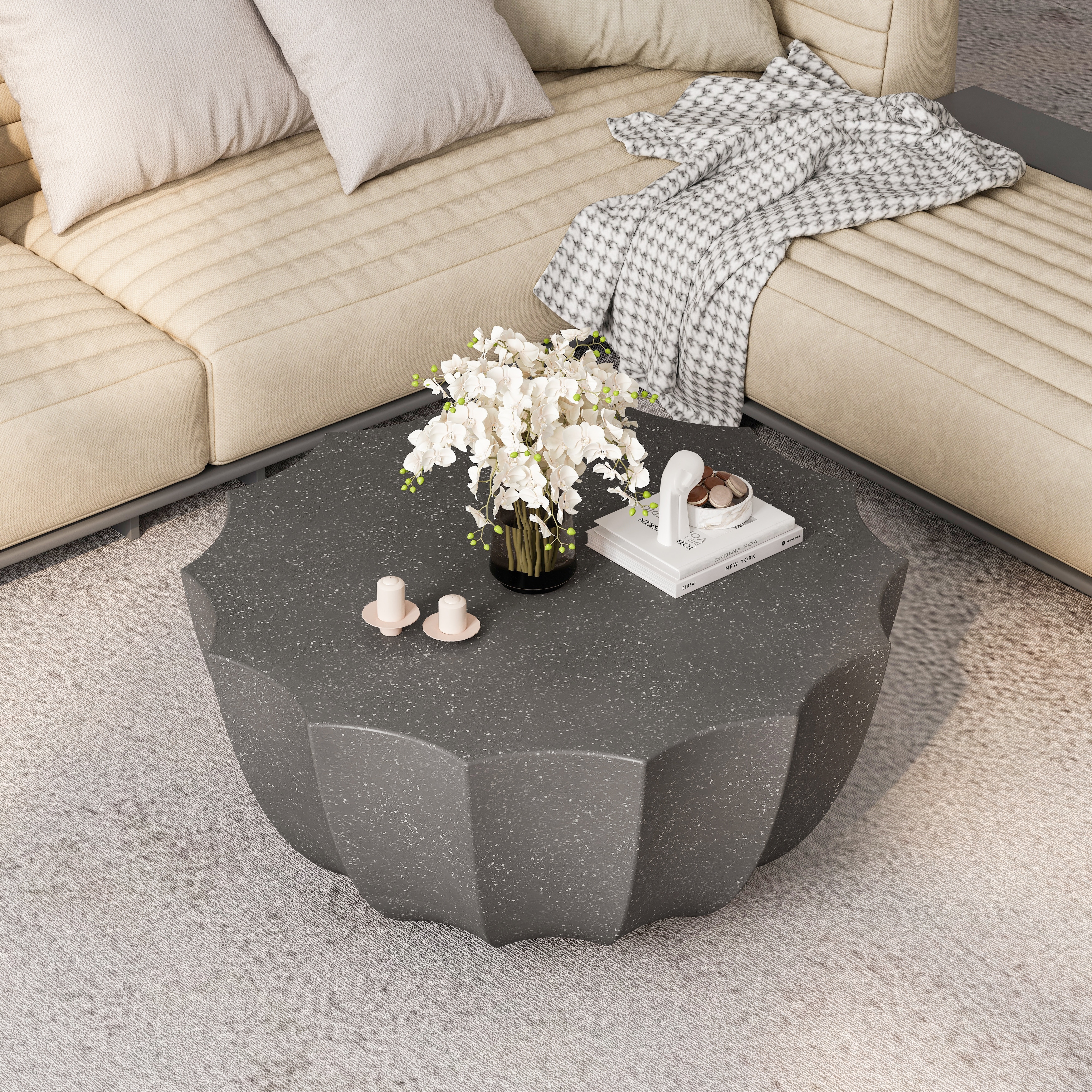 Cement Outdoor End Tables for Patio & Garden - Faux Terrazzo Accent Tables, Modern Small Round Side Tables .