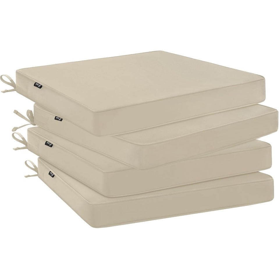 Set of 4 Water-Resistant Outdoor Chair Cushions with Hidden Zipper and Attach Straps, 19x19x2 Inches