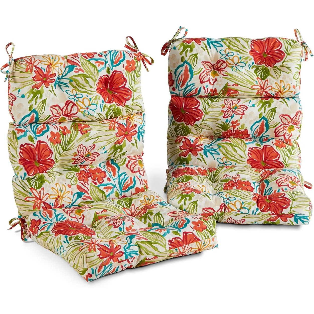 Reversible Outdoor High-Back Chair Cushion Set of 2, Garden Floral Design, 44x22 Inches, Water-Resistant Polyester