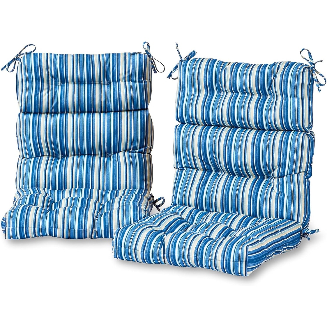 44 x 22-inch High Back Outdoor Chair Cushion Set of 2, Steel Blue Stripe