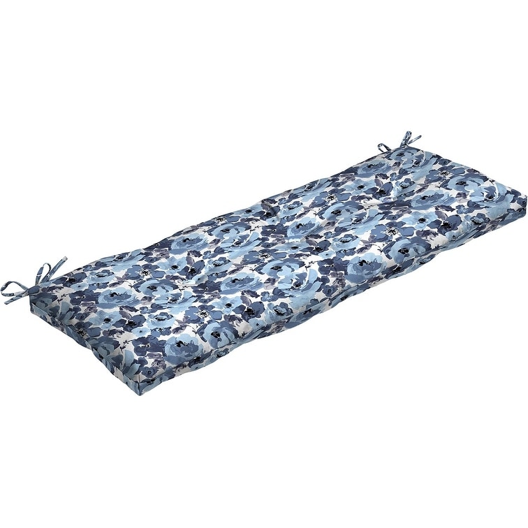 Outdoor Tufted Bench Cushion, 48 x 18, Water Repellent, Fade Resistant, Blue Garden Floral