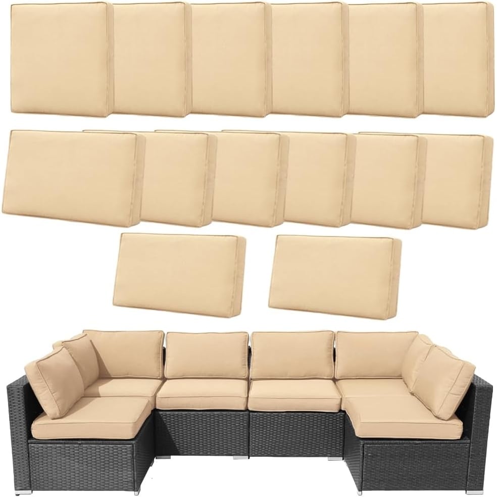14Pcs Washable Outdoor Cushion Covers with Zipper for 6-Seater Patio Sofa, Seat and Back Covers Only