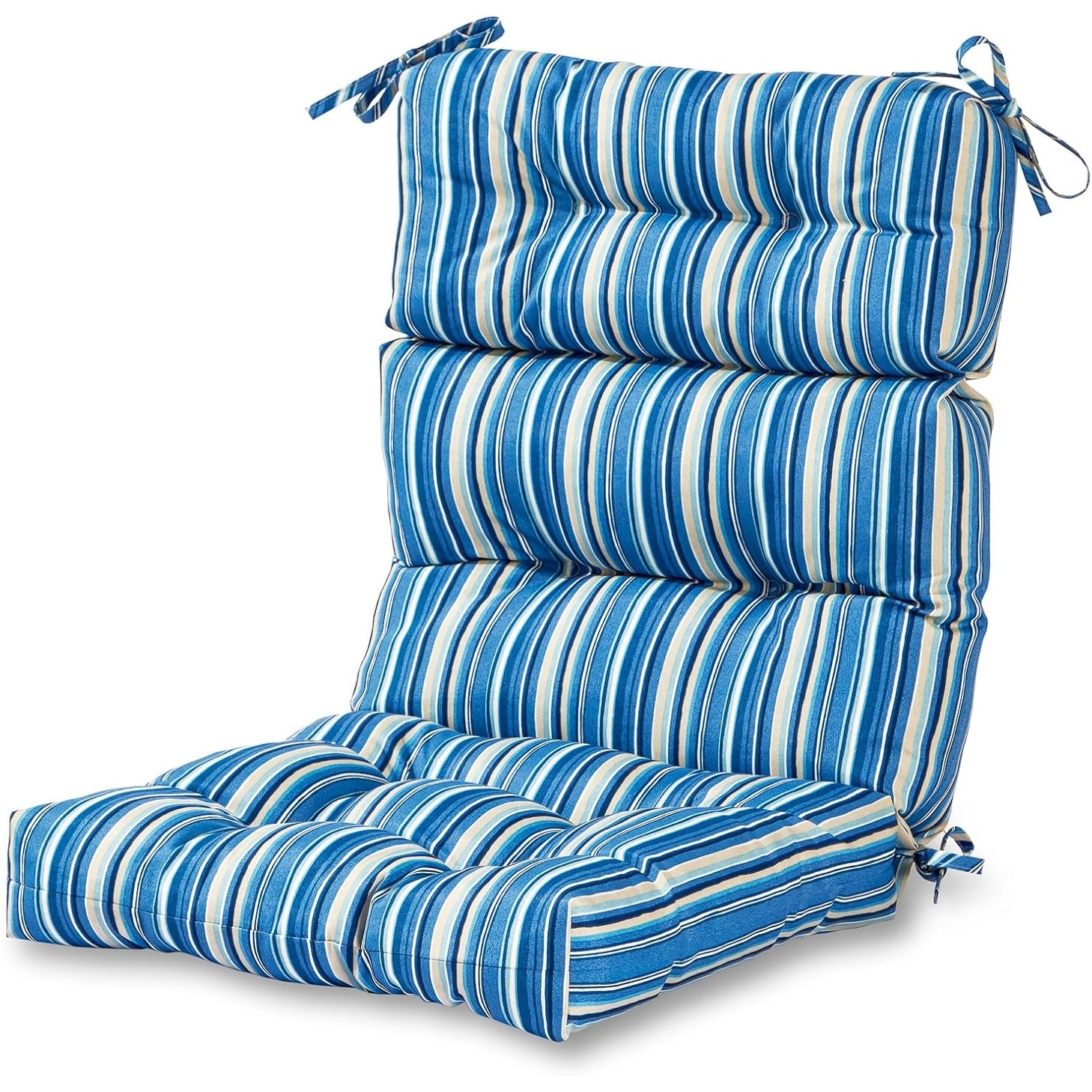 44 x 22-inch High Back Chair Cushion, Set of 1, Steel Blue Stripe, Heavy-Duty Polyester, Plush Support, Outdoor Use