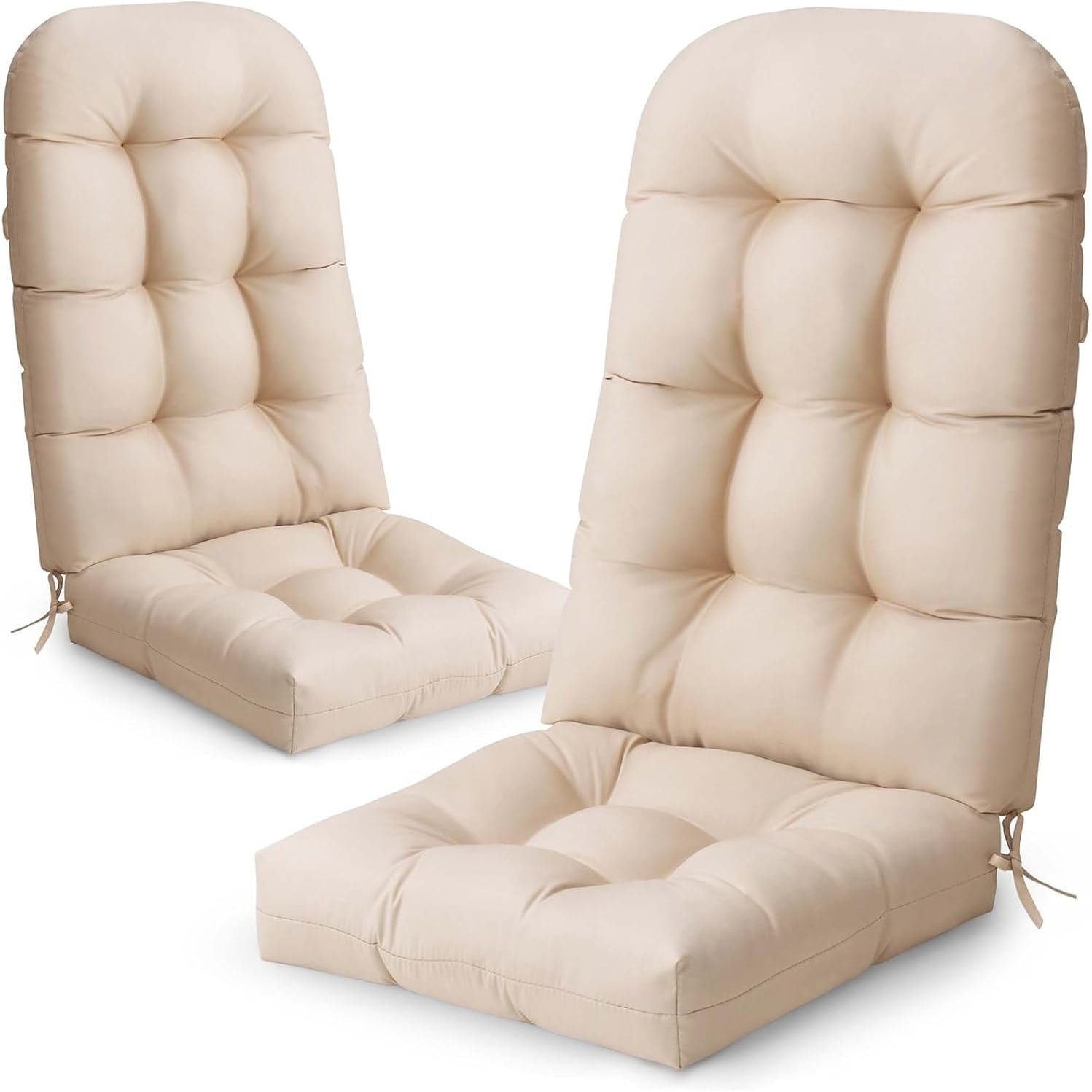 Water Resistant Outdoor Rocking Chair Cushions Set of 2, 50x20x4 Inch High Back Patio Cushions with Tie-Back, Beige